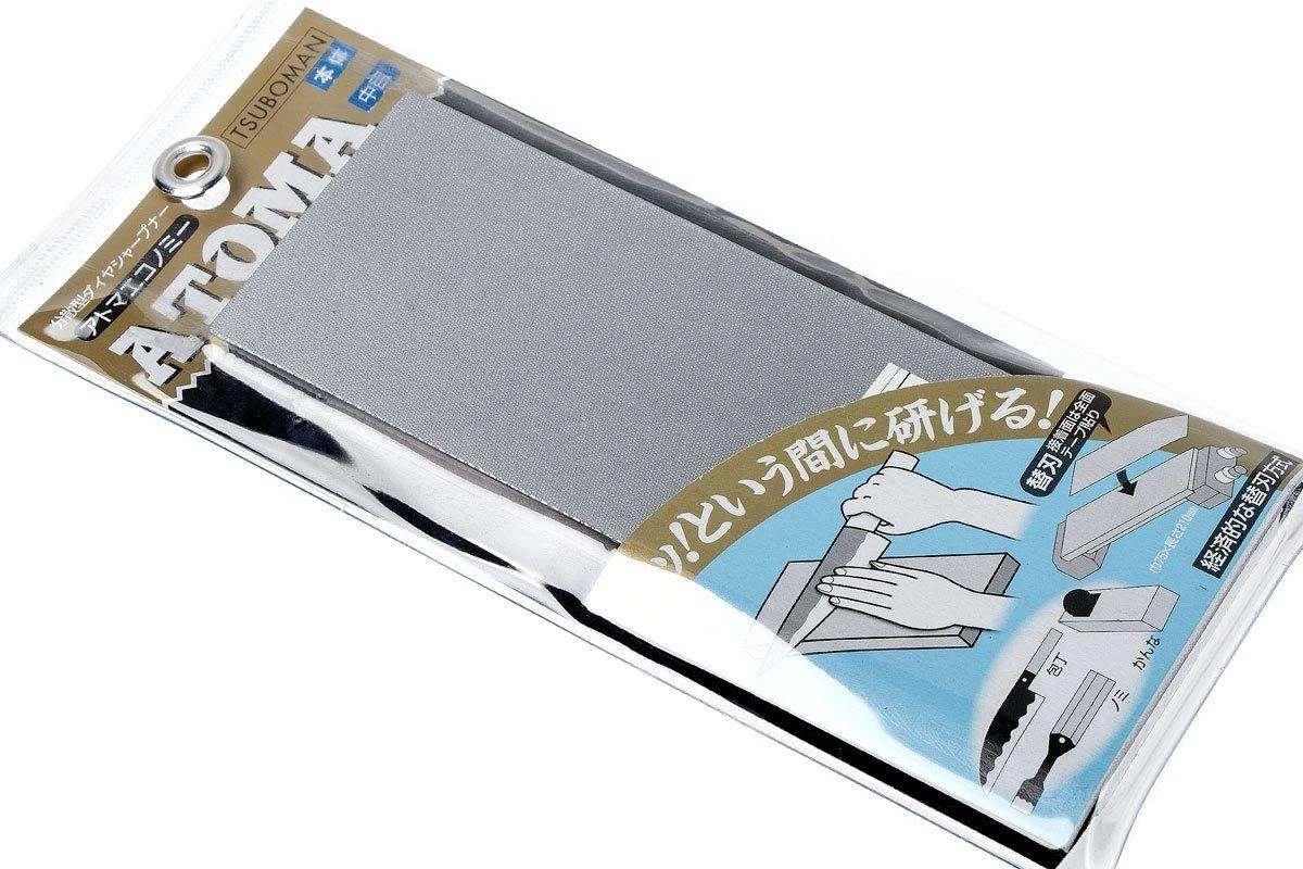 Dieser Atoma Diamond Stone ist ein hochwertiger mittelgrober Diamantschleifstein von japanischer Herkunft. Er wird für die Reparatur sehr beschädigter Messerklingen oder anderen Schneidwerkzeugen verwendet. Aber auch als Abrichtblock für herkömmliche Schleifsteine ist dieser Atoma Schleifstein gut geeignet.