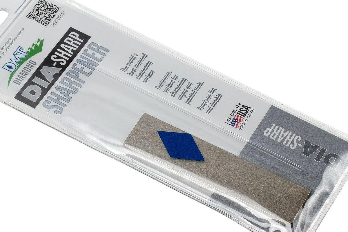 Der DMT DiaSharp Bench Stone 4×1 D4C einseitig, grob ist ein sehr kompakter Schleifstein Der grobe Stein schärft eine stumpfe Schneide schnell und bereitet die Schneide für den Feinschliff vor. Diamantschleifsteine schärfen schnell und je nach Körnung auch sehr scharf. Ein großer Vorteil beim Schleifen auf einem Diamantschleifstein ist, dass er nicht geglättet werden muss. Bei diesem DiaSharp Stein ist der schleifende Diamant auf einer dicken Stahlplatte von 4 mm aufgebracht. Dies garantiert die Planheit des Schleifsteins.