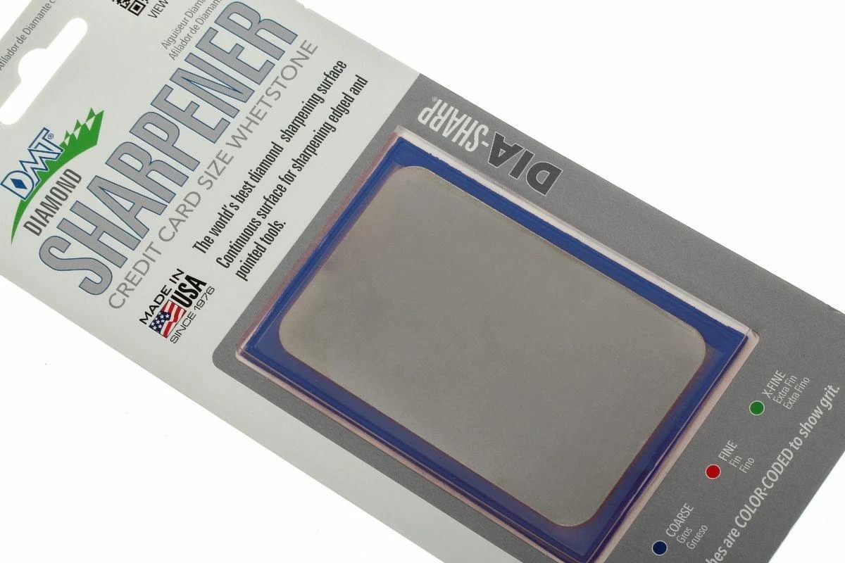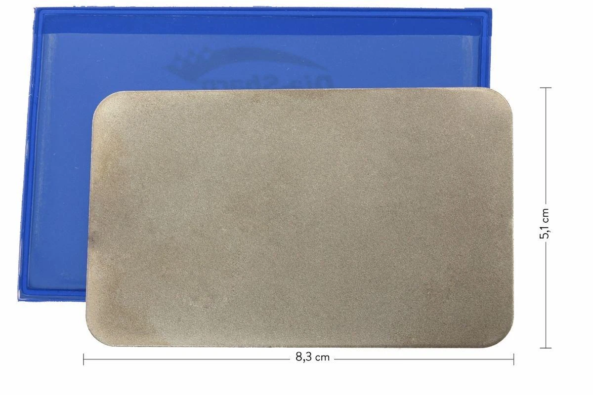 Dieser kompakte Schleifstein mit Diamant-Schleifoberfläche ist optimal für unterwegs, man kann diesen selbst in eine Brieftasche stecken. Dies ist ideal für Menschen, die immer ein Ultra-scharfes Messer gebrauchen möchten. Diese Steine sind nicht mit dem bekannten Lochmuster von DMT ausgestattet. Das hat den Vorteil, dass beispielsweise auch kleine Meißel und andere kleine Dinge damit geschliffen werden können ohne, dass Sie in den Löchern stecken bleiben.
