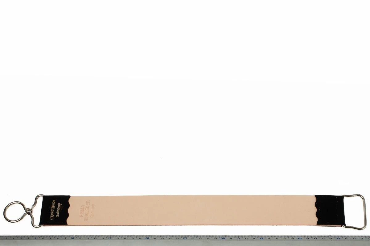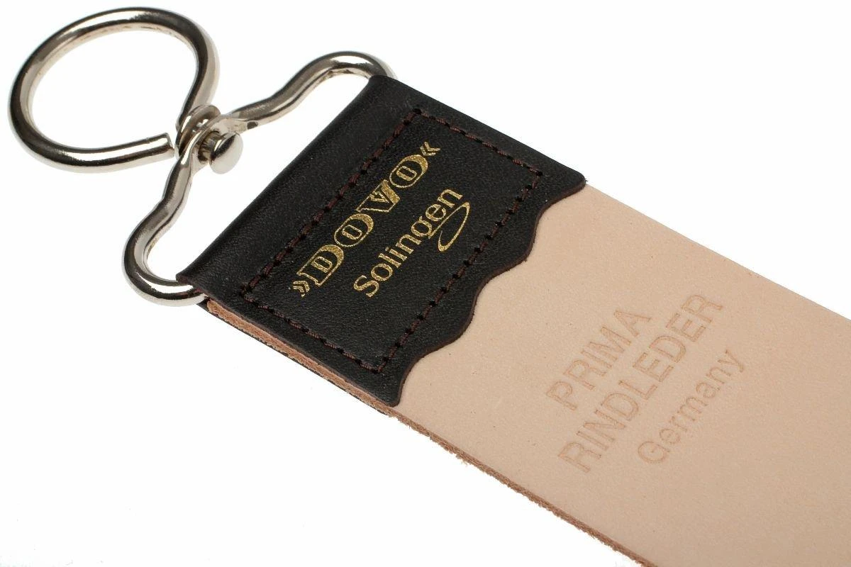 Dieser Leder-Streichriemen von Dovo hilft dir beim Polieren Deiner Messer. Nach dem Schleifen auf Deinem feinsten Schleifstein verleihst Du Deinen Messern auf diesem Streichriemen das gewisse Extra an Schärfe und einen schönen Glanz.