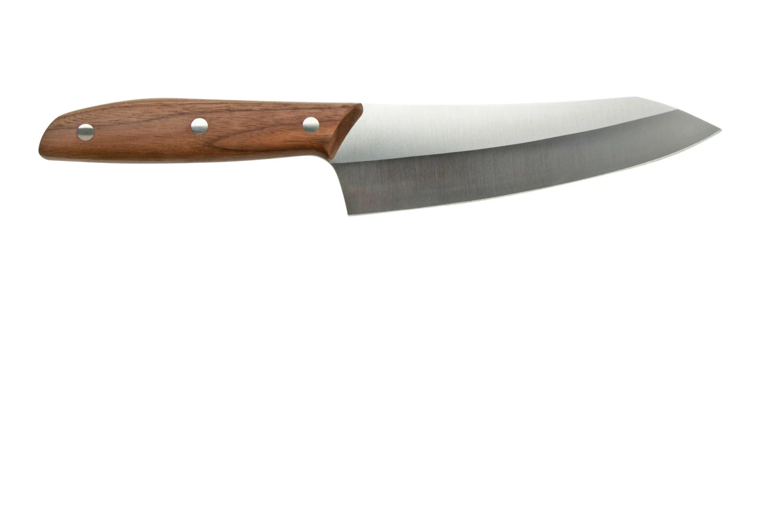 Das Due Cigni 1896 kengata ist ein schickes Küchenmesser. Kengata steht für „schwertartig“ und verweist auf die unvermittelt stark abgeschrägte Spitze der Klinge. Das Messer kann auch als Mitglied der Santoku-Familie angesehen werden. Mit der schmalen Spitze kannst Du Fleisch, Fisch und Gemüse sehr fein schneiden.