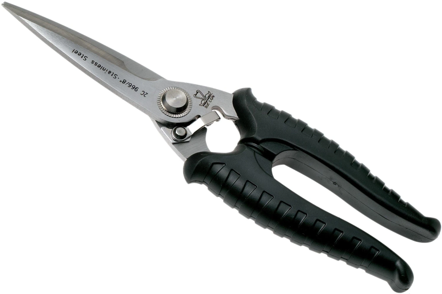 Bei der Küchenschere von Due Cigni hat eine Schneide eine Mikroverzahnung. Daher ist diese Schere geeignet um verschiedene Stoffe und vor allem auch schwere Stoffe zu schneiden. Dank der Mikroverzahnung auf einer Seite kannst Du prima gerade schneiden. Außerdem ist die Schere groß und stark genug, um auch Geflügel schneiden zu können.