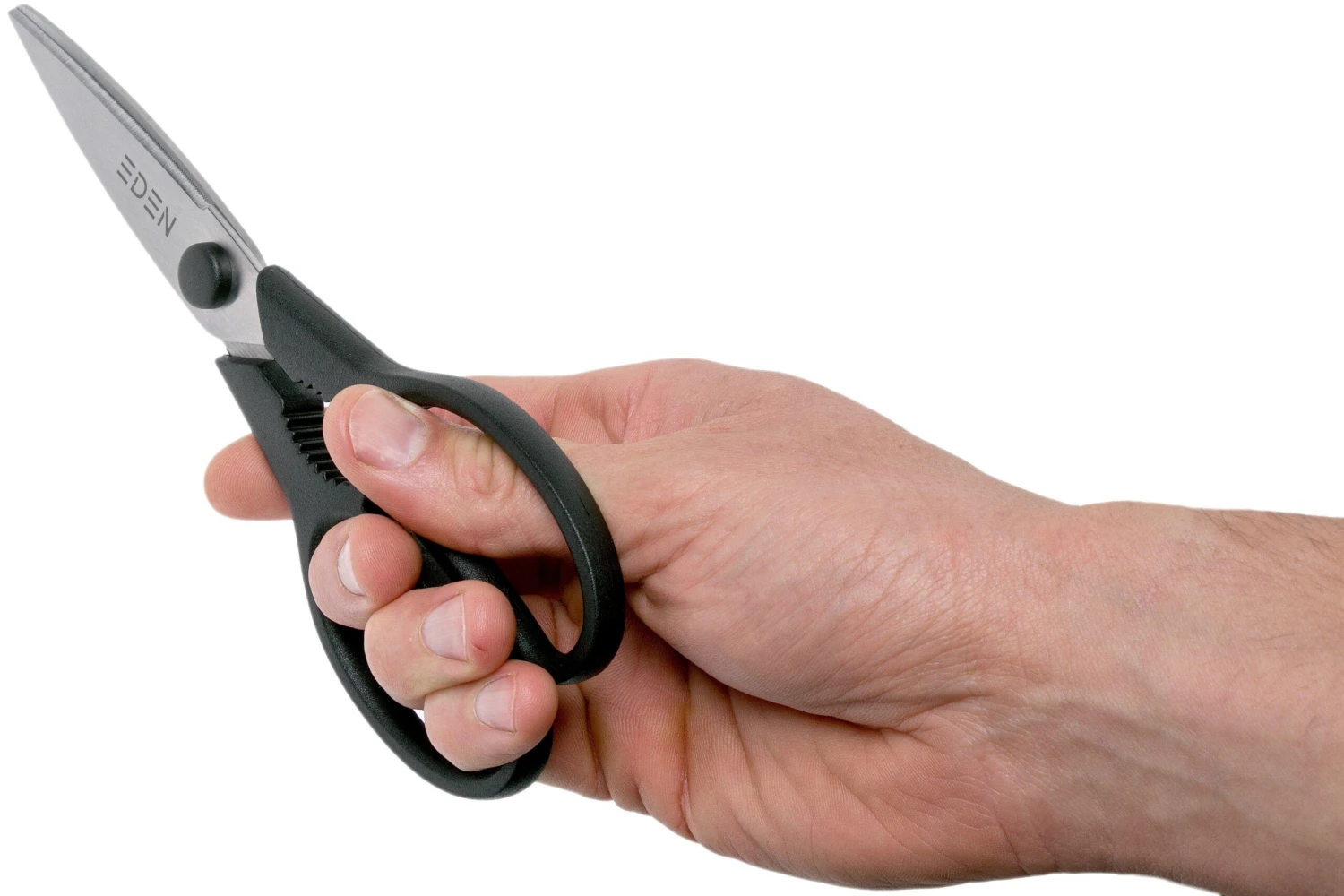 Mit der Eden Essentials Küchenschere können alle Arten von Küchenarbeiten erledigt werden. Viele Arbeiten in der Küche, die man normalerweise mit einem Messer erledigen würde, sind mit einer guten Küchenschere genauso einfach oder sogar noch einfacher. Zum Beispiel das Schneiden von Kräutern und feinem Gemüse. Aber auch Fisch und einige Fleischsorten können mit dieser Küchenschere in Stücke geschnitten werden. Sie kann auch als Nussknacker verwendet werden.