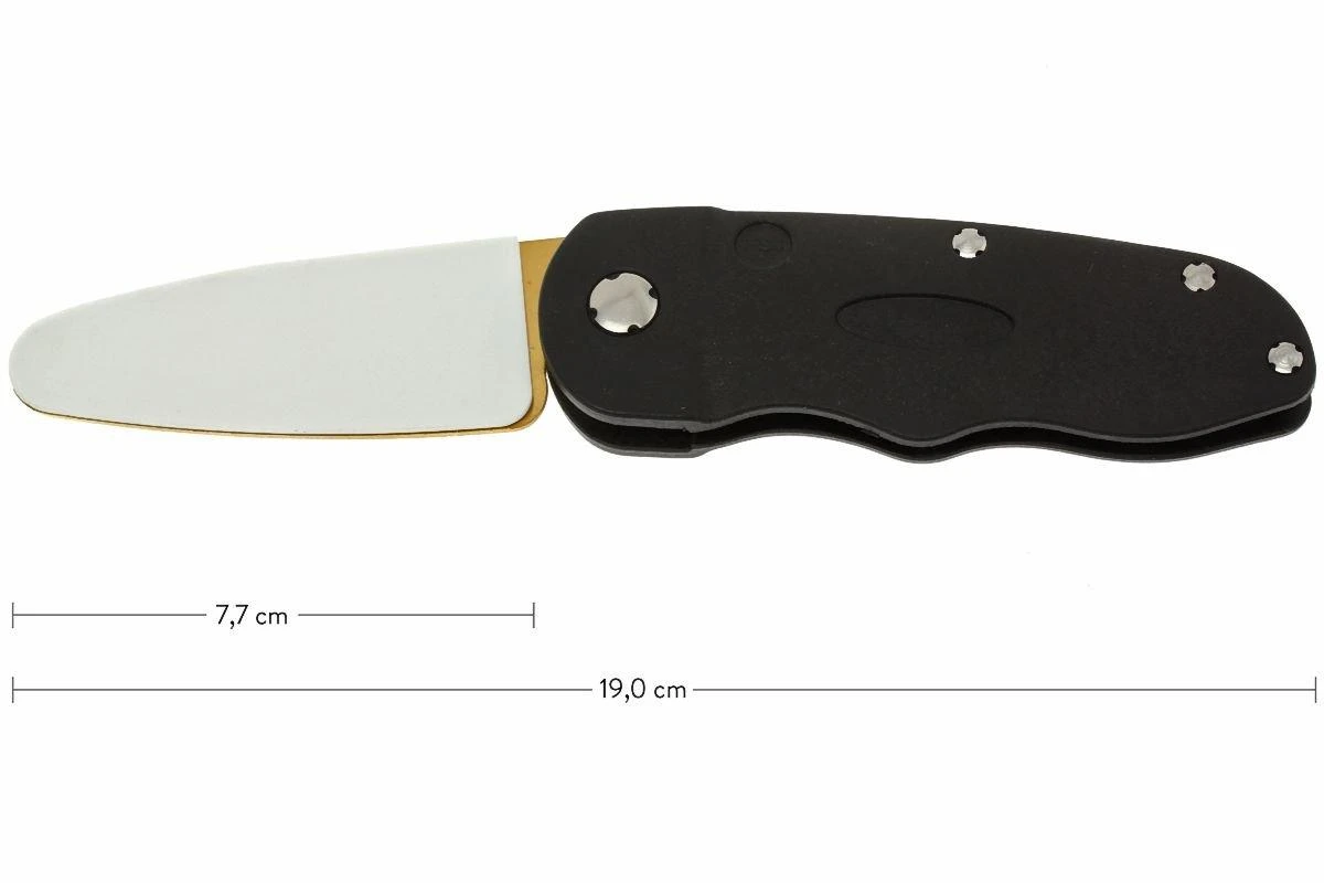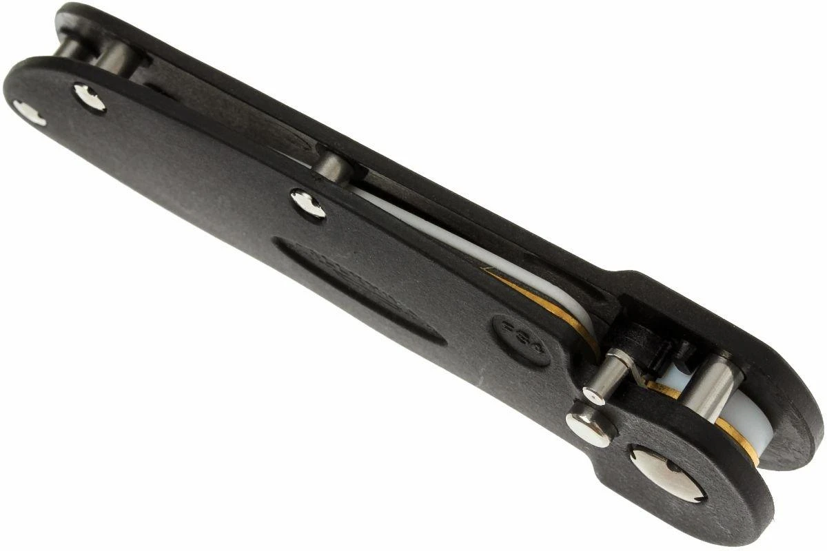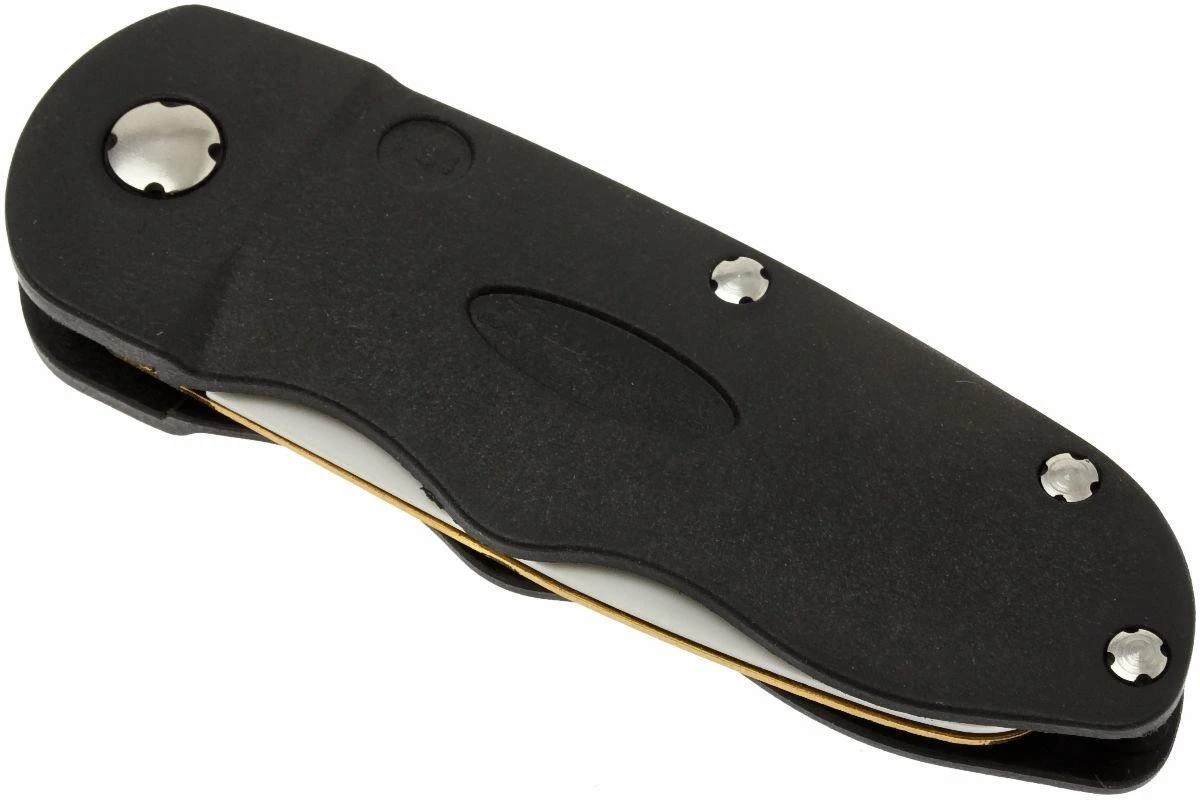 Der Schleifstein von Flipstone ist ein automatisch ausklappbarer Schleifstein, den man an zwei Seiten verwenden kann. Die Größe lässt sich mit der eines Taschenmesser vergleichen. Der FS4 ist ein wenig größer als der FS3. Diesen Schleifstein kann man folglich immer mit sich führen. Die gelbe Seite ist ein Diamant Schleifstein mit einer Körnungsgröße von 25 Mikron. Mit dieser Seite des Schleifers kann man den Schnitt wiederherstellen, wobei die maximale Schärfe mit der keramischen Seite von dem Schleifstein erreicht wird. Die beiden Schleifsteine sind aneinander geklebt und werden sich nicht lösen.