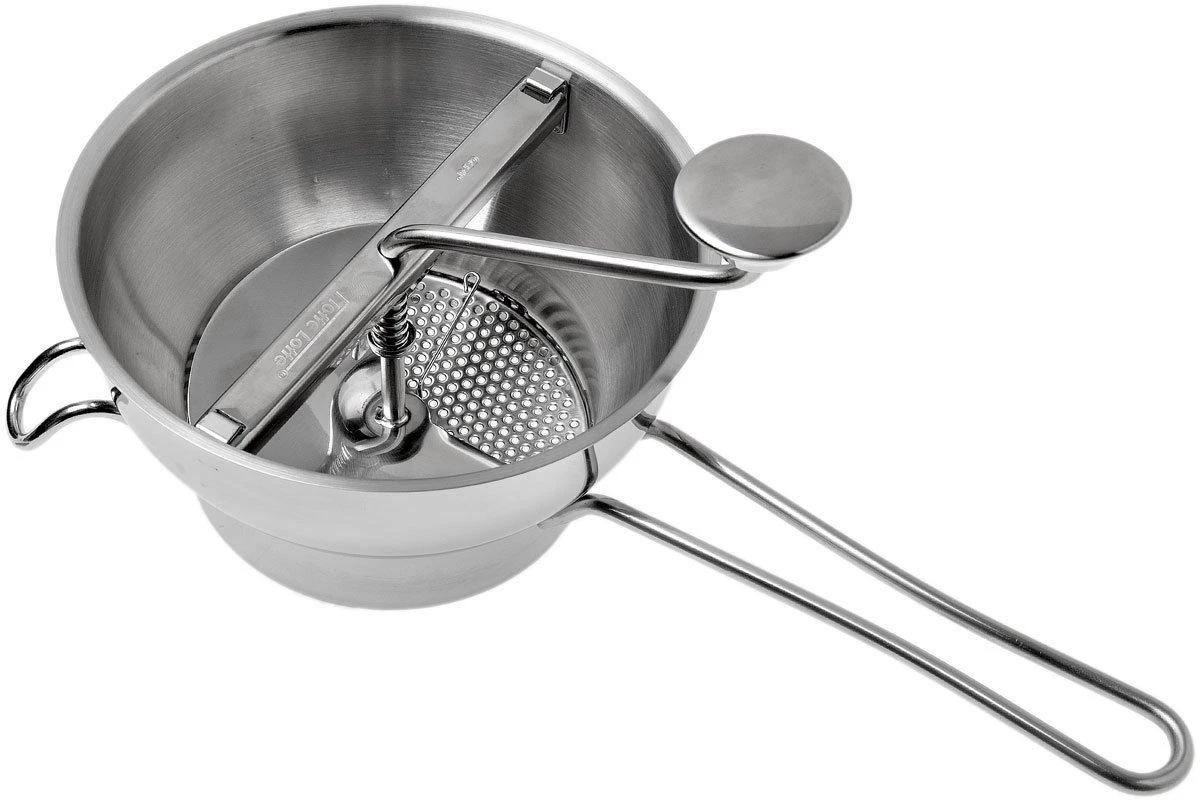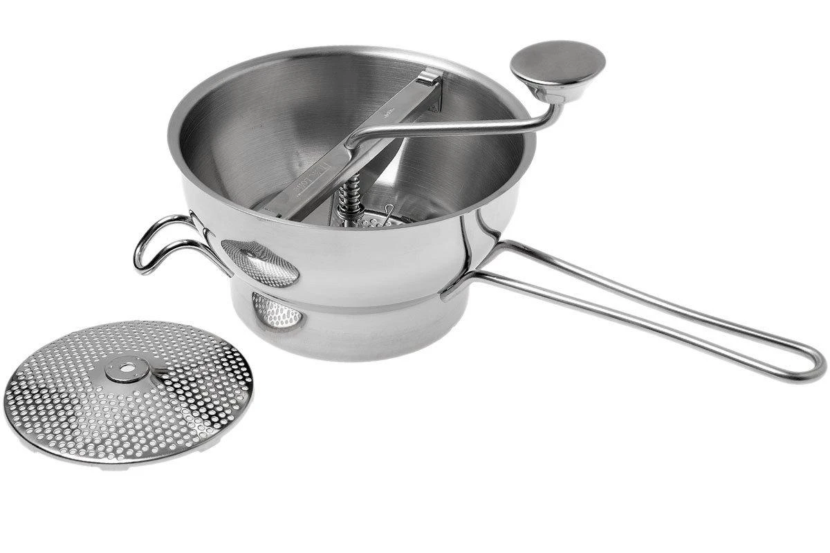 Mit einer Passiermühle, auch bekannt als Flotte Lotte, kannst Du Lebensmittel zerkleinern und pürieren, die nicht zu hart sind. Du kannst im Handumdrehen Marmelade, Mus, Soße, Suppe und Püree herstellen. Die Flotte Lotte von GEFU ist ein solches Werkzeug. Wird mit verschiedenen Scheiben geliefert, um Obst und Gemüse auf unterschiedlichste Weise zu verarbeiten. Die Flotte Lotte wird mit einer 2 mm Reibscheibe geliefert. Mit dieser Scheibe kannst Du Lauch, Spargel und anderes Gemüse passieren. Außerdem erhältst Du eine 3 mm große Scheibe zum Pürieren von Gemüse und Obst. Ein Schaber rotiert in der Schüssel und verhindert Ablagerungen an den Seitenwänden. Auf diese Weise werden die Zutaten auf die gleiche Größe gebracht. Die Schüssel hat ein Fassungsvermögen von 2 Litern und ist komplett aus Edelstahl gefertigt. Alle Teile können nach dem Gebrauch von Hand oder in der Spülmaschine gereinigt werden.