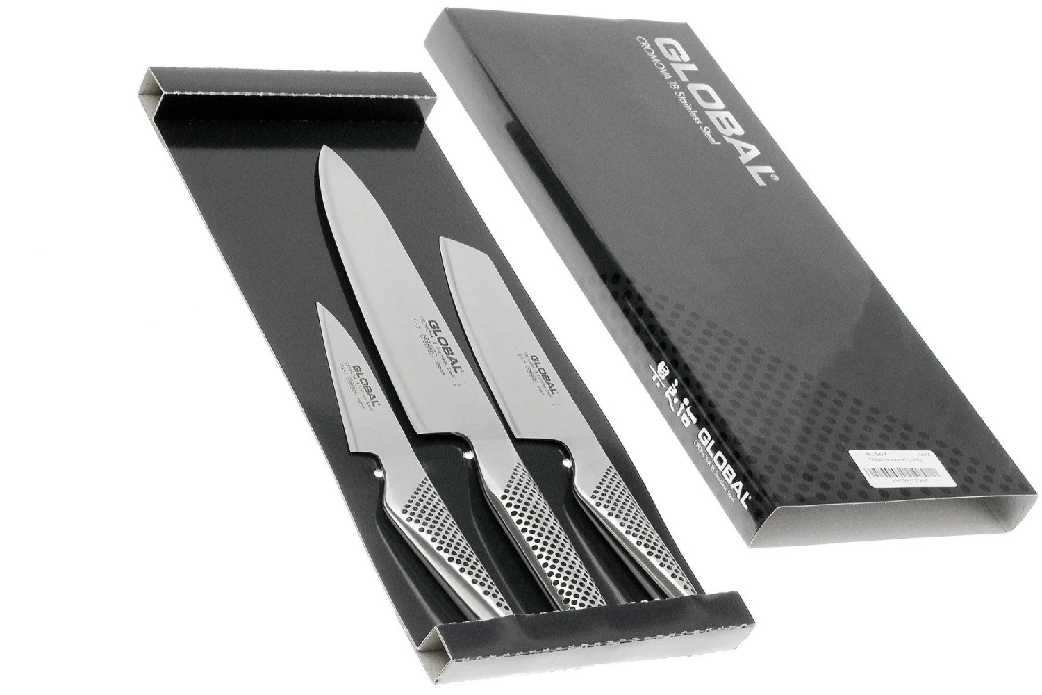 Dieses dreiteilige Global Messerset besteht aus einem G-2 Kochmesser, einem GS-5 Nakiri und einem GS-7 Schälmesser. Alle japanischen Messer sind aus hochwertigem, rostfreiem Cromova 18-Stahl gefertigt. Sie sind nicht nur sehr scharf, sondern dank des hohen Chromgehalts auch sehr verschleißfest, korrosionsbeständig und leicht zu schleifen.