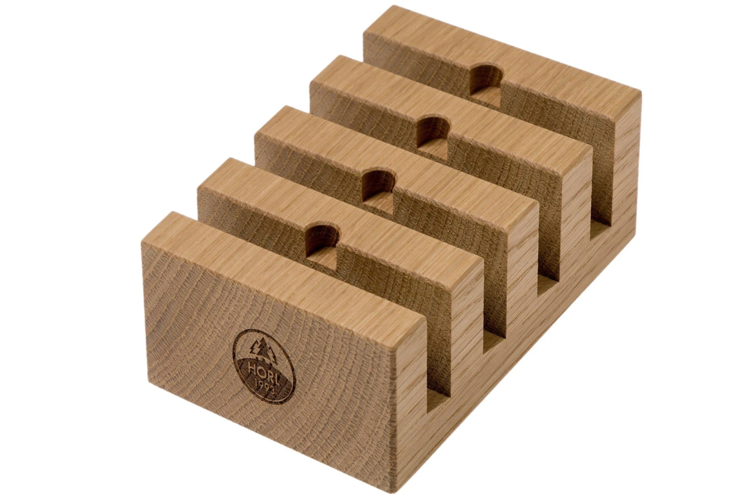 In der HORL Schleifscheiben Station aus Eichenholz kannst Du Deine HORL Schleifsteine sicher und dekorativ aufbewahren. Diese Station ist aus einem einzigen Stück Eichenholz gefertigt und bietet Platz für maximal vier Schleifsteine. So hast Du immer den richtigen Schleifstein zur Hand. Außerdem sieht die Schleifscheiben Station einfach toll aus und ist ein echter Blickfang auf jeder Anrichte und jedem Tisch. Vier Anti-Rutsch-Füße sorgen dafür, dass auch die Station selbst an ihrem Platz bleibt.