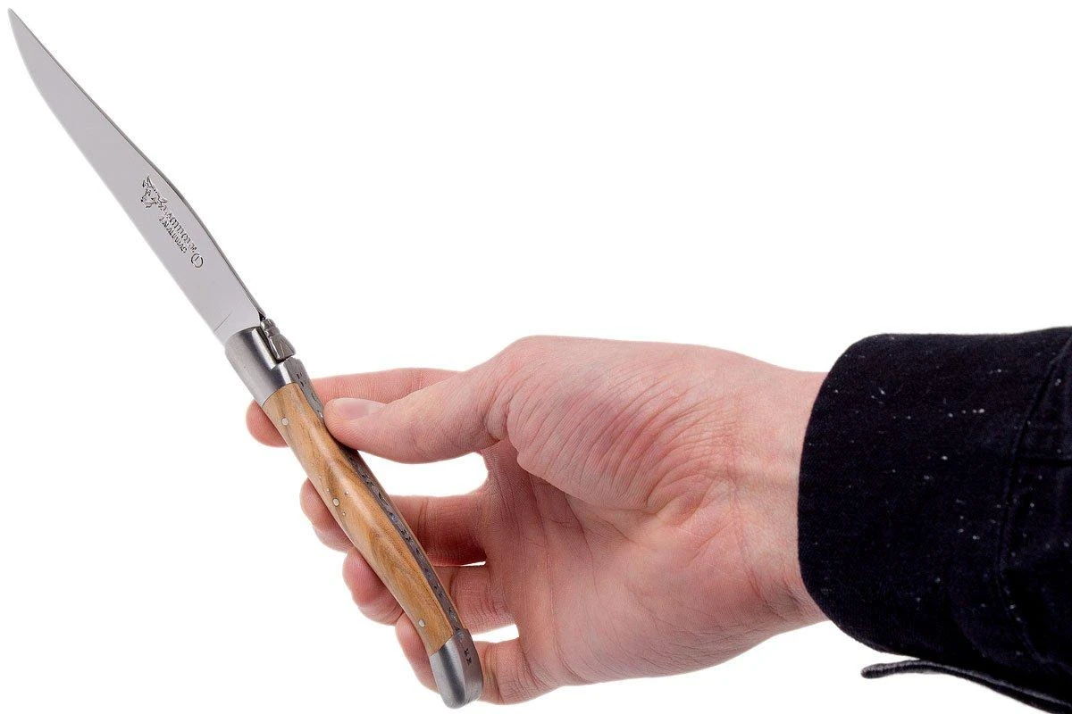 Wenn Du auf der Suche nach handgefertigten, französischen Steakmessern bist, bist Du bei Laguiole en Aubrac genau richtig. Diese authentische Laguiole-Marke fertigt seit vielen Jahren Messer auf hohem Niveau. Die Klinge dieser Tafelmesser ist aus rostfreiem Messerstahl gefertigt. Diese läuft komplett durch den Griff aus attraktivem Olivenholz.