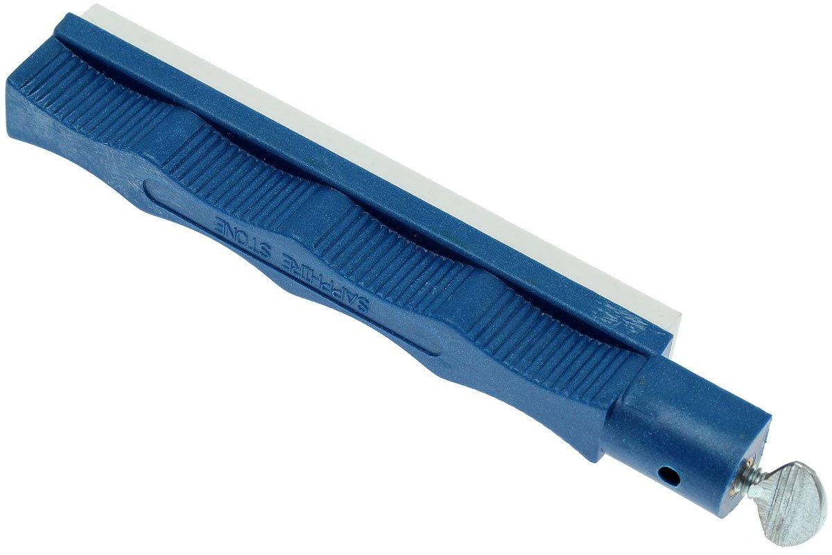 Schleifstein, der in Kombination mit einem Lansky Schleifsystem verwendet werden kann. Dieser Super Saphir Schleifstein (Super Sappphire Polishing Hone) ist für die Politur sehr gut und scharf geschliffener Messer gedacht. Das Tüpfelchen auf dem i:Dieser Schleifstein hat eine sehr feine Körnung und wird bei Messern, die bereits sehr scharf sind, zum Erzielen einer ultimativen Schärfe eingesetzt. Das Ergebnis ist eine spiegelnde Klinge, deren Schärfe der neuer Messer mindestens ebenbürtig, wenn nicht sogar besser ist!
