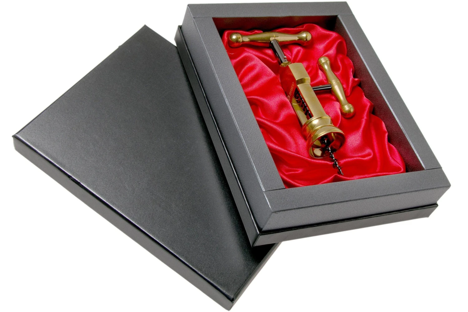 Man merkt sofort, dass der edle Maserin King Korkenzieher qualitativ hochwertig ist. Der Vollmetall-Korkenzieher fühlt sich robust und schwer an. Außerdem ist das Design elegant, und der King Korkenzieher wird in einer luxuriösen Geschenkbox geliefert. Der Korkenzieher ist von Hand gefertigt und besteht aus Messing. Das Modell ist eine Nachbildung eines London Rack Korkenziehers aus dem 19. Jahrhundert.