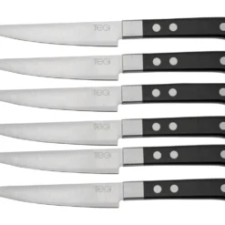 Maserin TEGI 2500TG01-N 6-teiliges Steakmesser-Set Mit Rolltasche, Schwarz