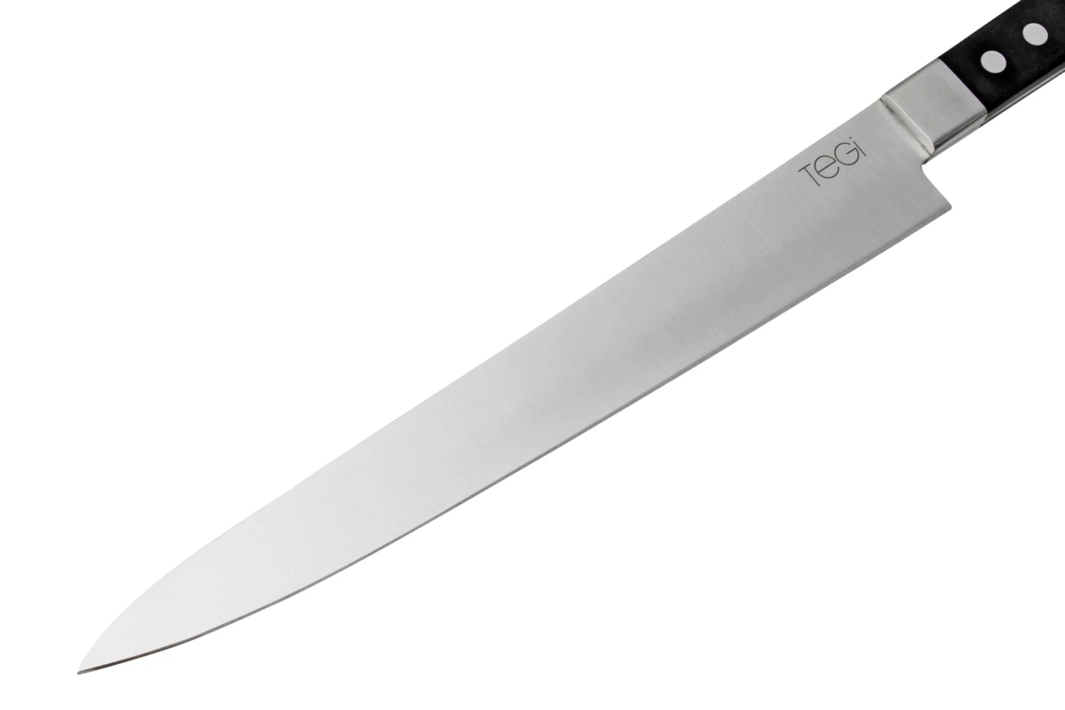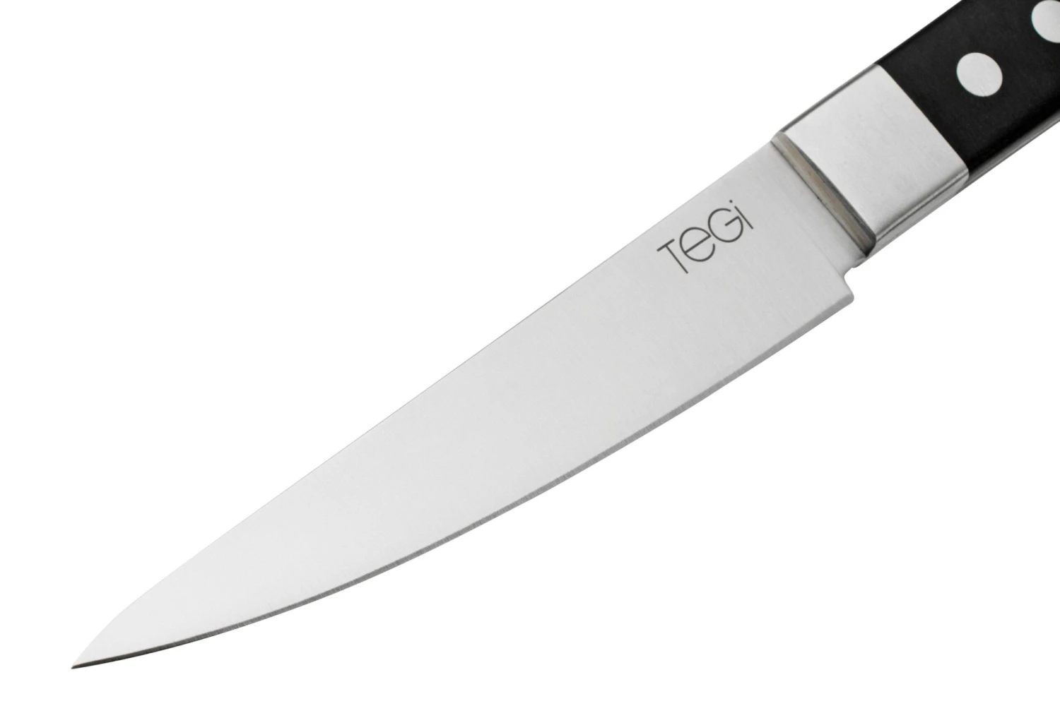 Das Maserin TEGI 2500TG02-N 6-teilige Küchenmesserset schwarz ist ein Set mit verschiedenen stilvollen Küchenmessern. Vom langen Sujihiki bis zum kleinen Tourniermesser bietet dieses Messerset für jede Aufgabe in der Küche das richtige Messer. Dieses Set wird mit einer Rolltasche und sechs Messerschützern geliefert.