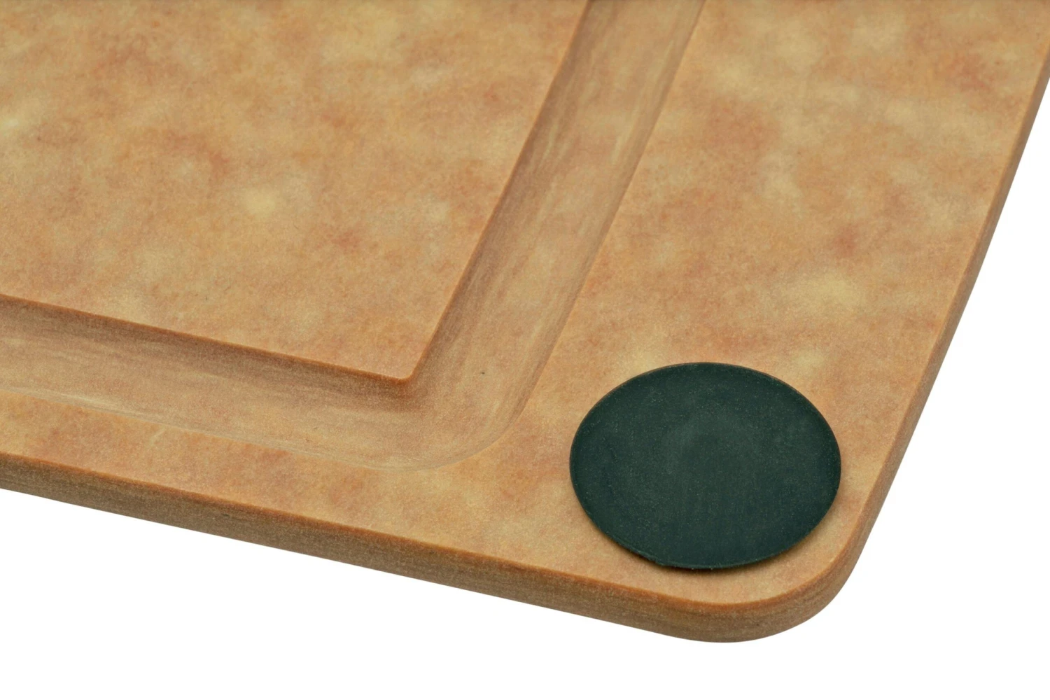 Das Victorinox All-in-One 7.4126 ist ein 37 cm breites und 28,5 cm langes Schneidebrett. Das Schneidebrett ist aus braunem Richlite gefertigt. Ein Material, das aus einer Kombination von 65 % FSC-zertifiziertem Zellstoff und 35 % Phenolharz besteht. Das Ergebnis ist ein dünnes Schneidebrett mit einer glatten, porenfreien, hitzebeständigen, BPA-freien und vor allem hygienischen Oberfläche. Dieses Holz ist weich genug, um die Schärfe des Messers nicht zu beeinträchtigen und gleichzeitig hart genug, um tiefe Kratzer zu vermeiden.