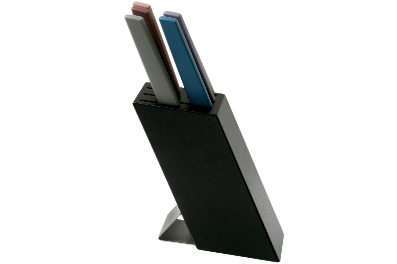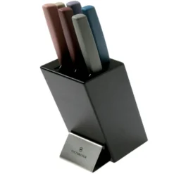 Das 6-teilige Victorinox Swiss Modern Messerset ist eine farbenfrohe Bereicherung für Deine Küche. Der Block aus schwarz lackiertem Buchenholz sorgt für einen modernen Look. Die farbigen Griffe verleihen diesem Messerset einen einzigartigen und frischen Touch. Das Logo von Victorinox ist in den Metallsockel eingraviert..