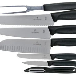 Die Victorinox SwissClassic 7-teilige Küchengarnitur ist das perfekte Geschenk für jeden begeisterten Koch und jede begeisterte Köchin. Vom mühelosen Schälen von Kartoffeln mit dem Sparschäler bis zum Schneiden von großem Fleisch mit dem Fleischmesser bietet Dir dieses Set alles, was man für die täglichen Aufgaben in der Küche benötigt.