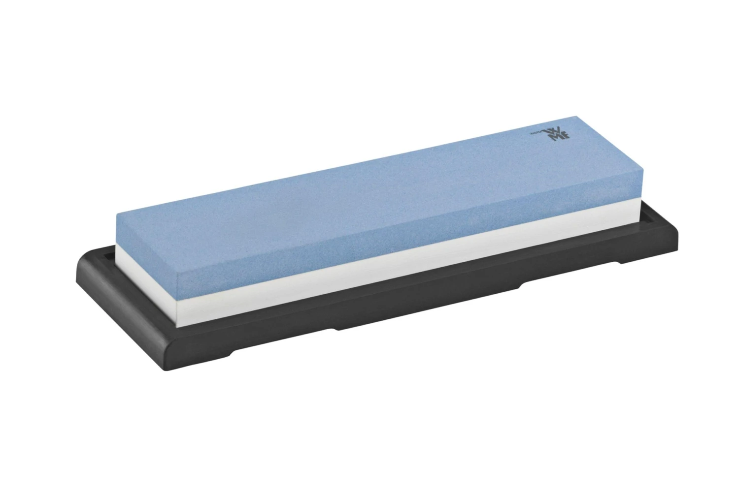 Der WMF Keramik-Kombi-Schleifstein ist ein doppelseitiger Schleifstein, mit dem Du alle Deine Küchenmesser wieder rasiermesserscharf schärfen kannst. Mit diesem Schleifstein erhältst Du also eigentlich zwei Schleifsteine zum Preis von einem. Eine grobe Seite, um einem stumpfen Messer wieder eine gerade Schneide zu verpassen, und eine Seite, um das Messer anschließend wieder messerscharf zu schärfen.
